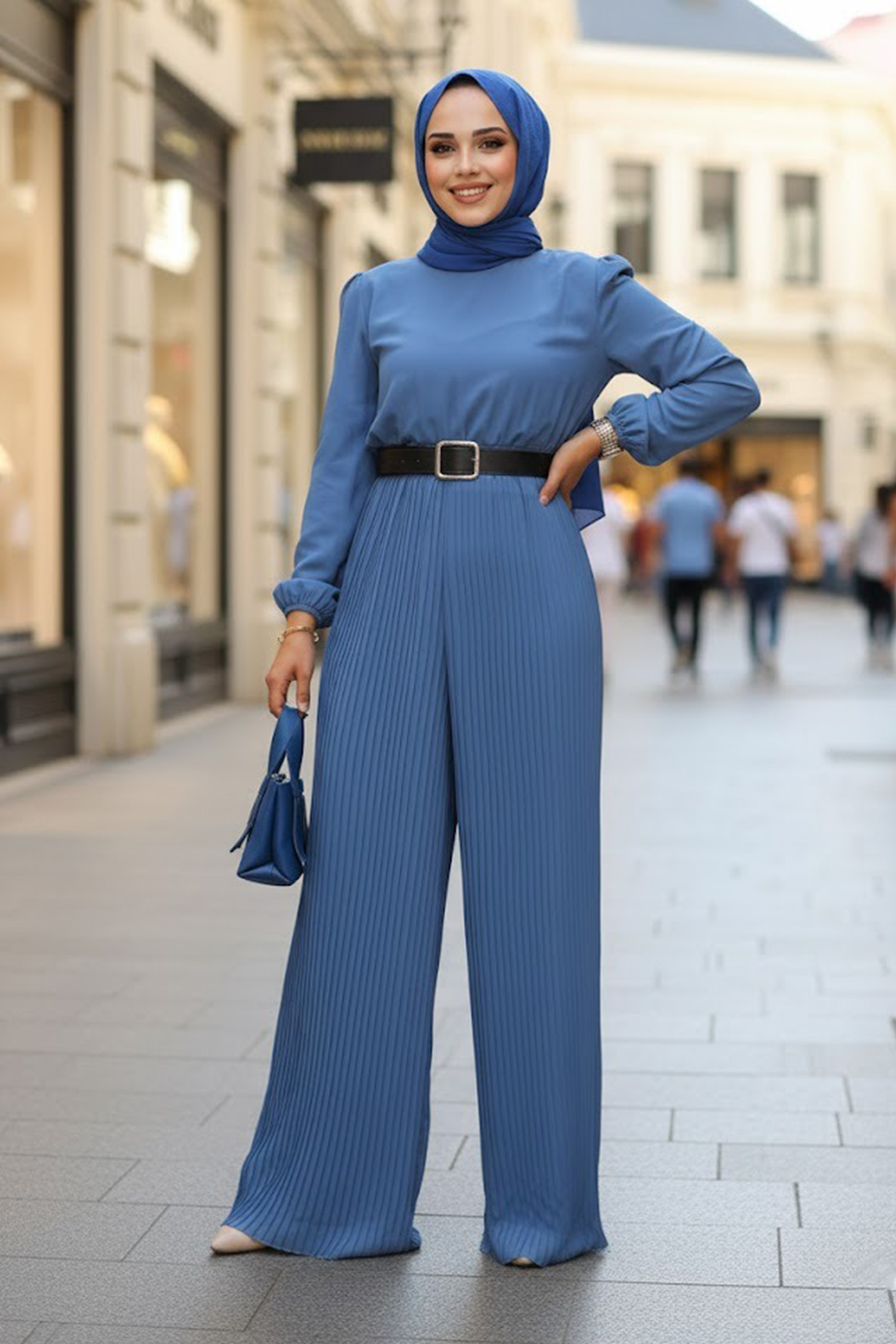 Caractéristique du produit : Col zéro, manches longues, manches élastiquées, taille élastique, ceinture à boucle, pantalon plissé et doublure.