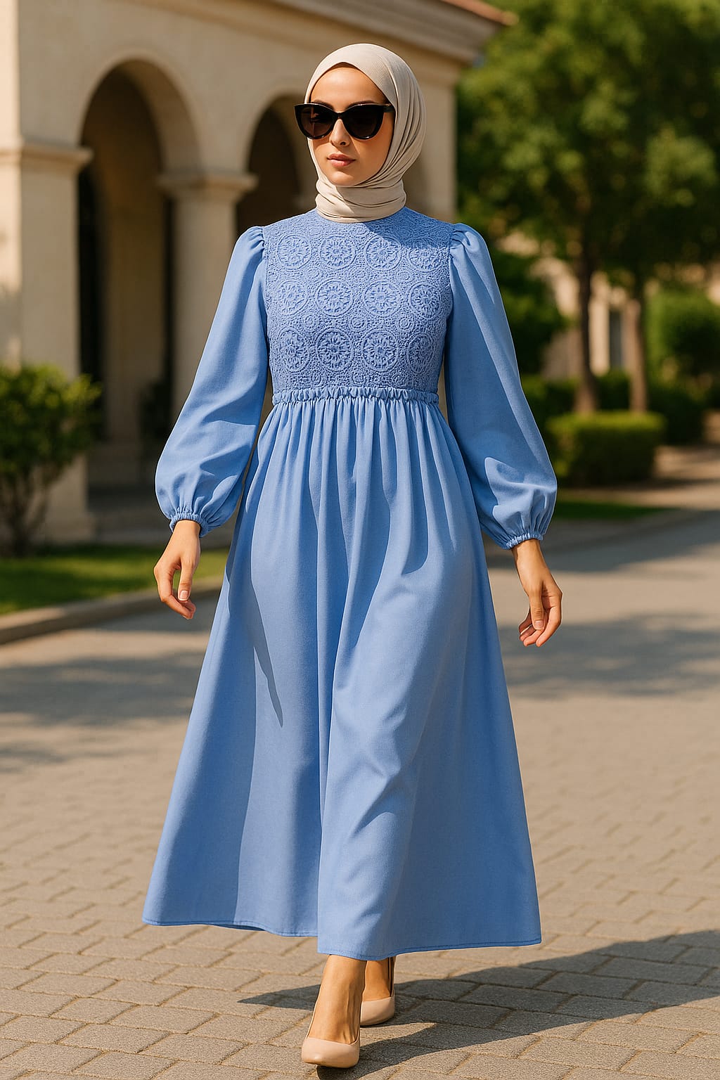 Kumaş Özelliği: %50 Viskon %25 Polyester %25 Likralı kumaştan üretilmiştir.Ürün Özelliği: Sıfır yaka, uzun kollu, kol ucu lastikli, omuzları büzgülü, dantel detaylı, beli büzgülü ve arka ortadan fermuarlıdır.