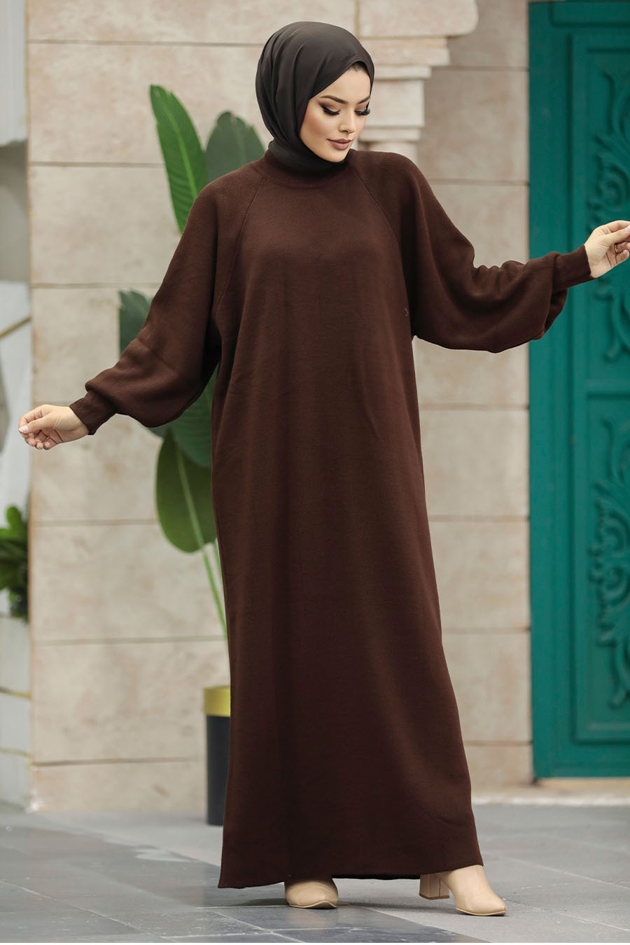 Modest Brown Floral Long Sleeve Dress 50251KH