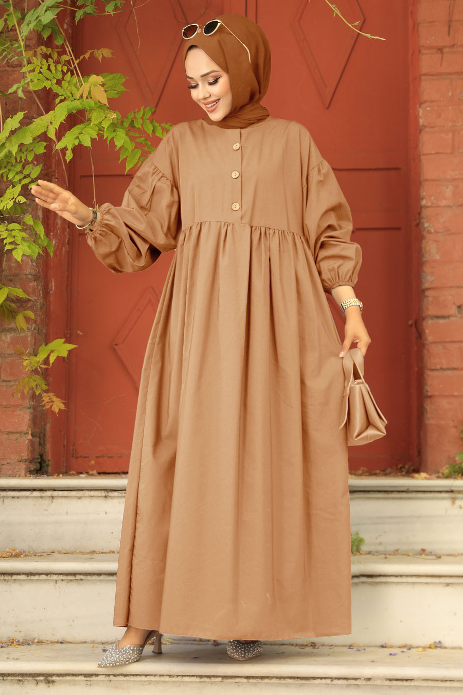 Modest Brown Floral Long Sleeve Dress 50251KH