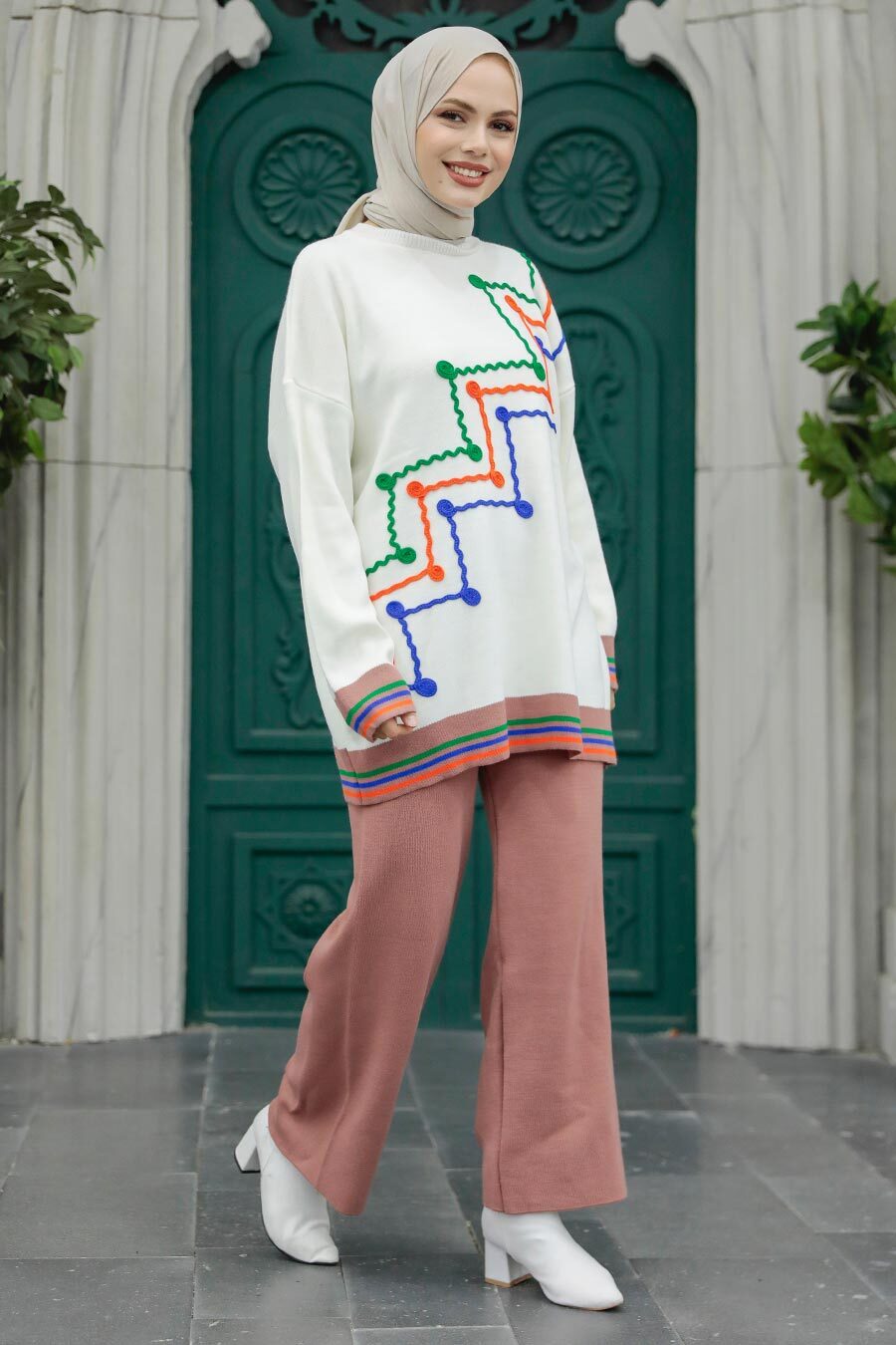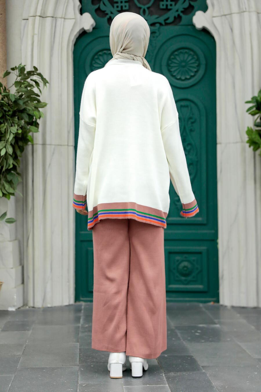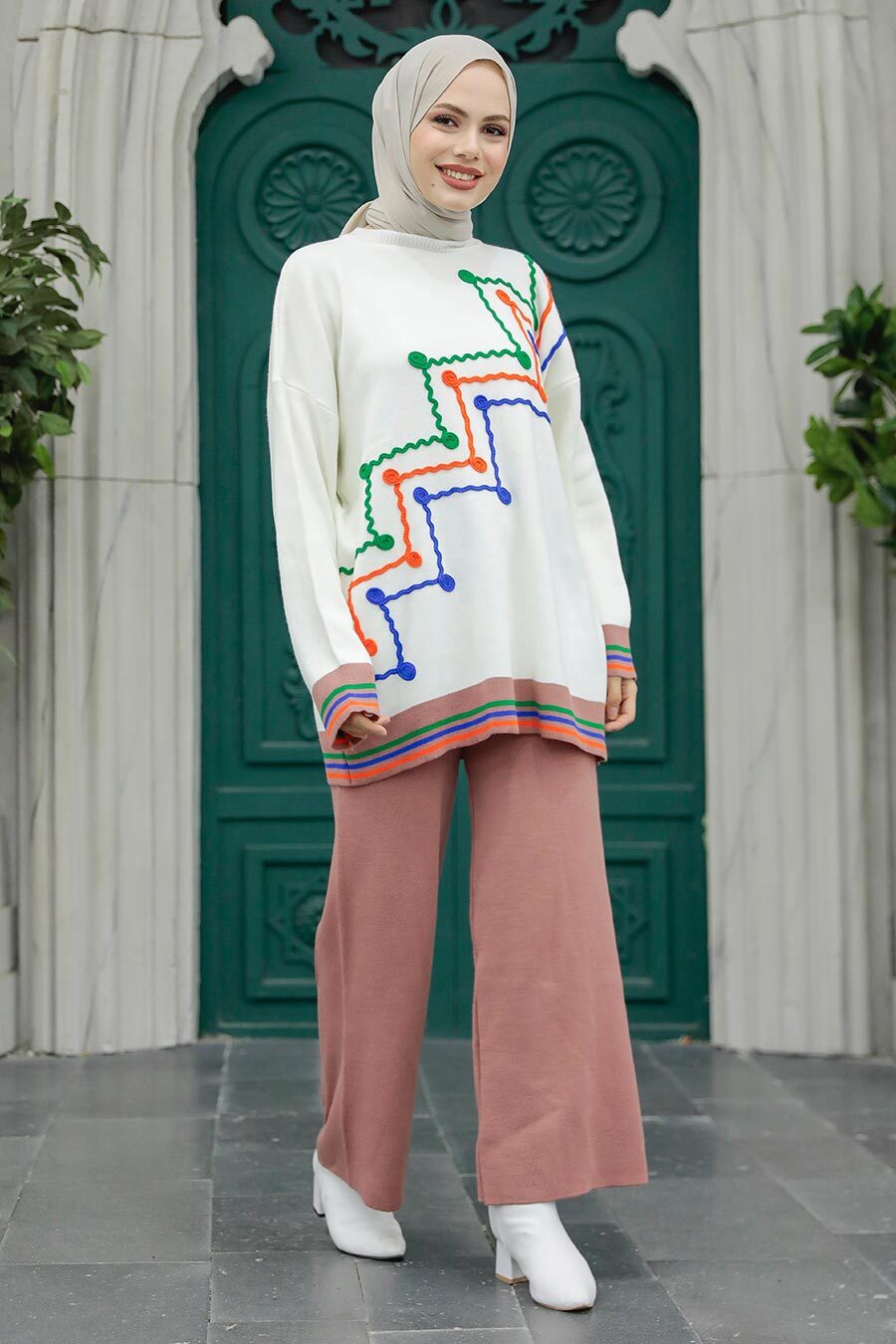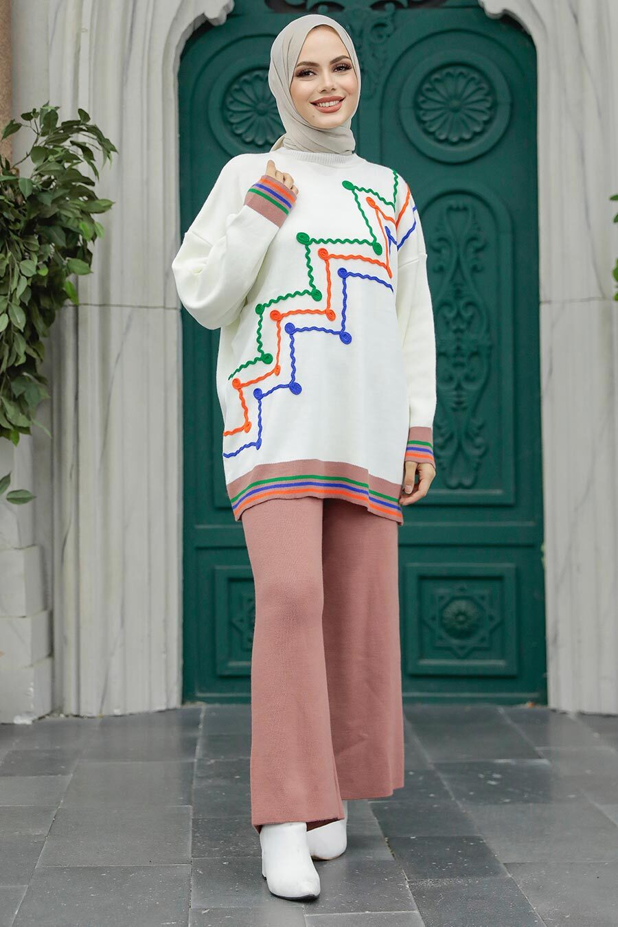 Ürün Özelliği: Sıfır yaka, uzun kollu, desenli, pantolon belden lastikli ve geniş paçadır.