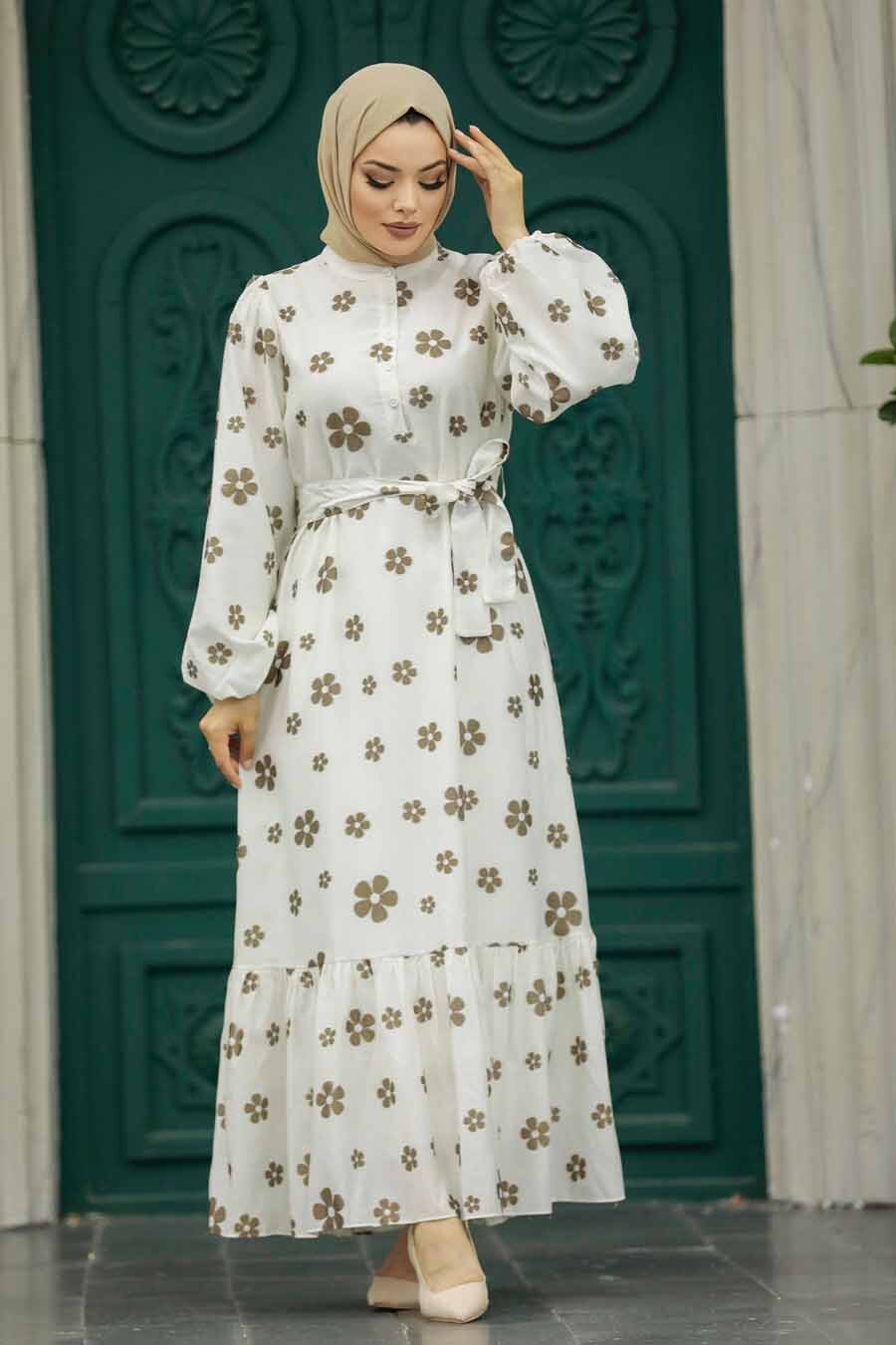Ürün Özelliği: Sıfır yaka, uzun kollu, kol ucu lastikli, ön ortadan düğmeli, çiçek desenli, kendi kumaşından kemerli ve etek ucu volanlıdır.