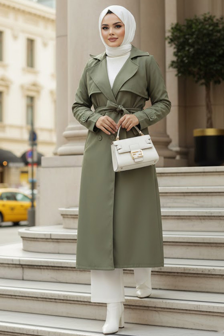 Kemerli Haki Tesettür Trençkot 60500HK