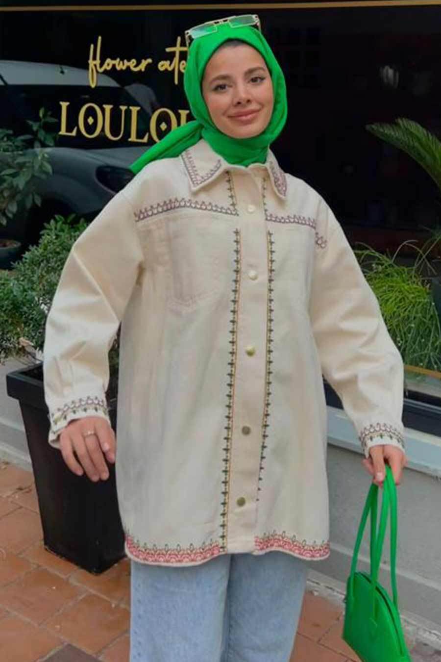Kumaş Özelliği: %80 Pamuklu %20 Polyester kumaştan üretilmiştir.Ürün Özelliği: Klasik yaka, uzun kollu, manşetli, ön ortadan, metalik düğme kapamalı, nakışlı, ve cep detaylıdır.Ürün Boyu: 80 cm