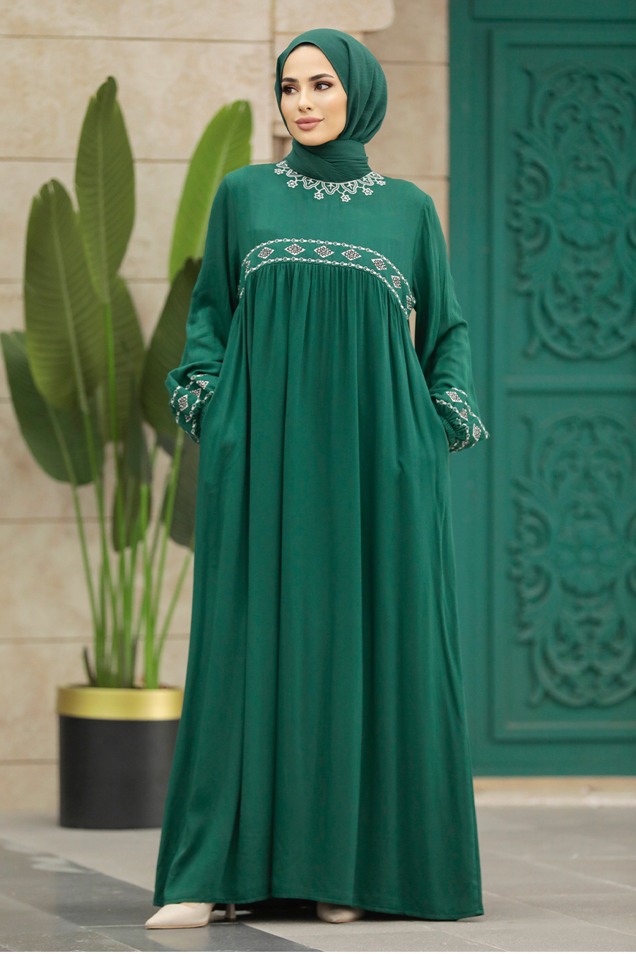 Green Hijab Dress 76440Y