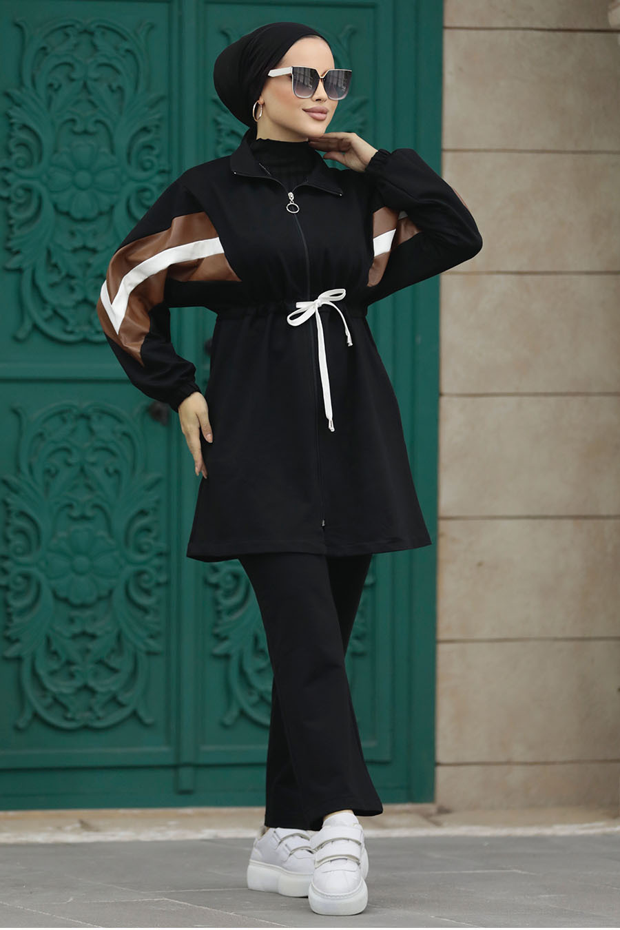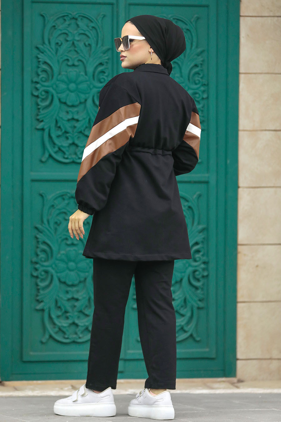 Kumaş Özelliği: %80 Pamuk %20 Polyester kumaştan üretilmiştir. Ürün Özelliği: Dik yaka, uzun kollu, kol ucu lastikli, belden bağcıklı, kolları deri detaylı, pantolon belden lastikli ve boru paçadır. Ürün Boyu: Üst:83 cm Alt:96 cm Ürün Rengi: Siyah-Life Style çekimlerden dolayı ürün renginde ton farkı olabilir Sipariş İçeriği: Bu ürün takım olarak satılmaktadır. Takım tunik ve pantolondan oluşmaktadır. Numune Bedeni: 38 Beden Yıkama: 30 derecede sıktırmadan yıkanabilir.