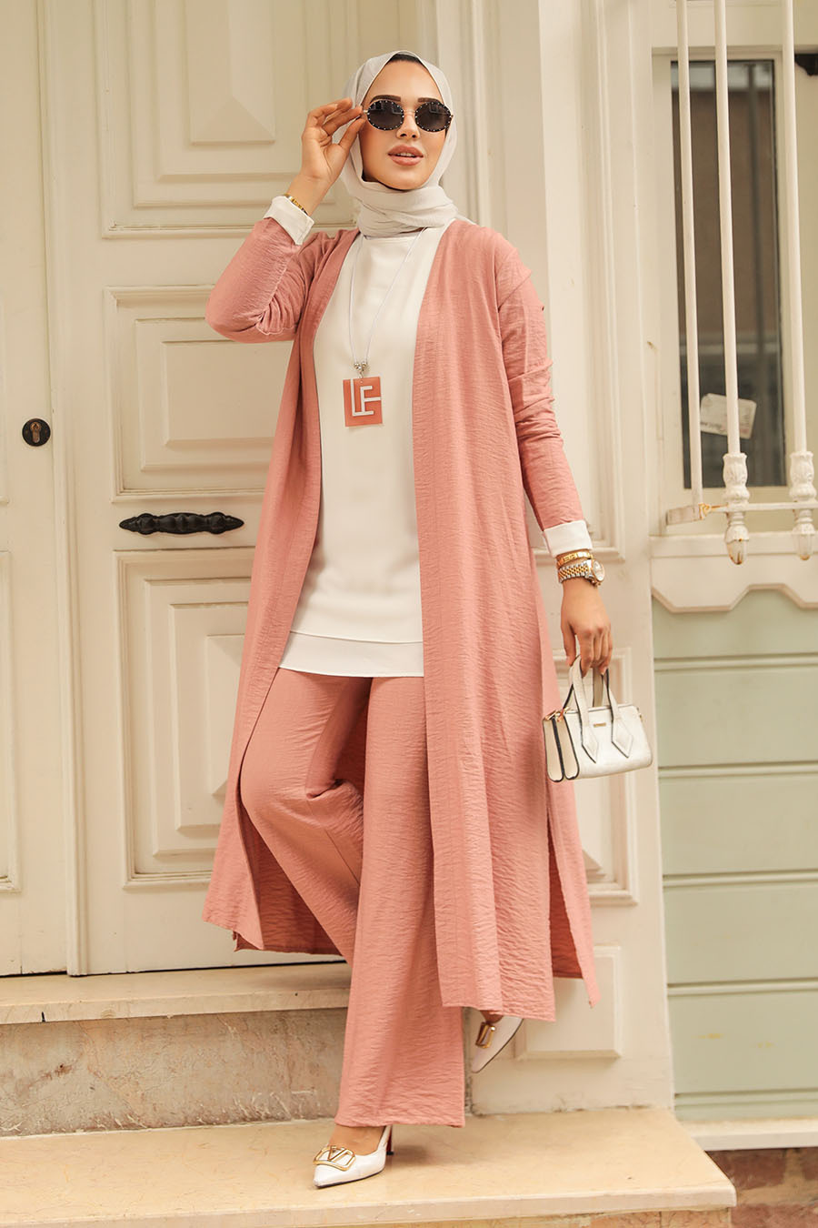 Ürün Rengi: Somon-Life Style çekimlerden dolayı ürün renginde ton farkı olabilir Sipariş İçeriği: Bu ürün takım olarak satılmaktadır. Takım hırka, tunik ve pantolondan oluşmaktadır.