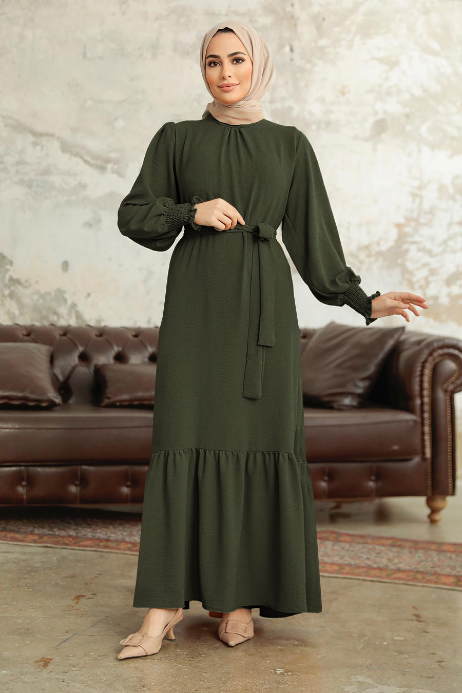 Long Dark Petrol Green Hijab Dress 5972KPY