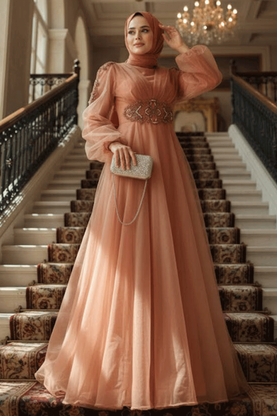 Neva Style - Modern Terra Cotta Islamic Wedding Gown 2249KRMT