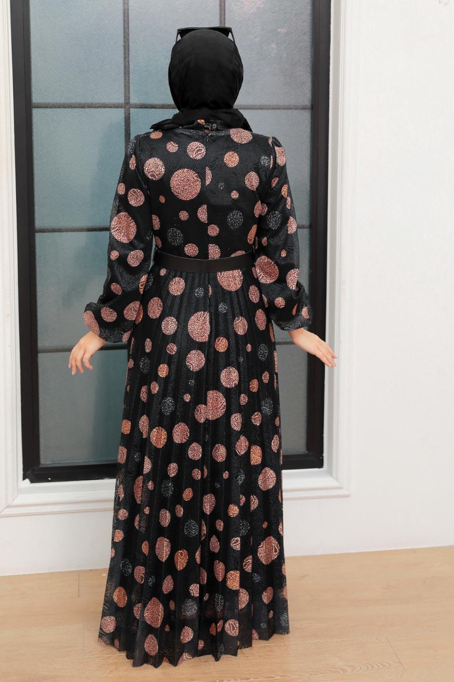 Neva Style - Puantiye Desenli Siyah Tesettür Elbise 11871S