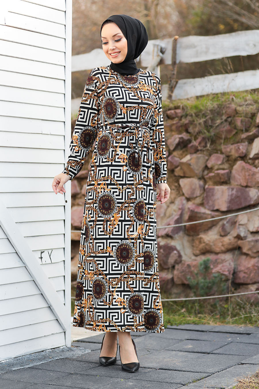 Caractéristique du produit : Col zéro, manches longues, à motifs, ceinturé de son propre tissu.