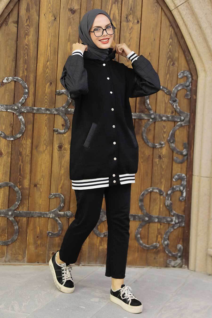 Kumaş Özelliği: %50 Polyester %50 Pamuklu kumaştan üretilmiştir.Ürün Özelliği: Sıfır yaka, kapüşonlu, uzun kollu, kol ucu lastikli, kolları kapitone detaylı, yanlardan cepli, etek ucu lastikli ve ön ortadan çıtçıt kapamalıdır.