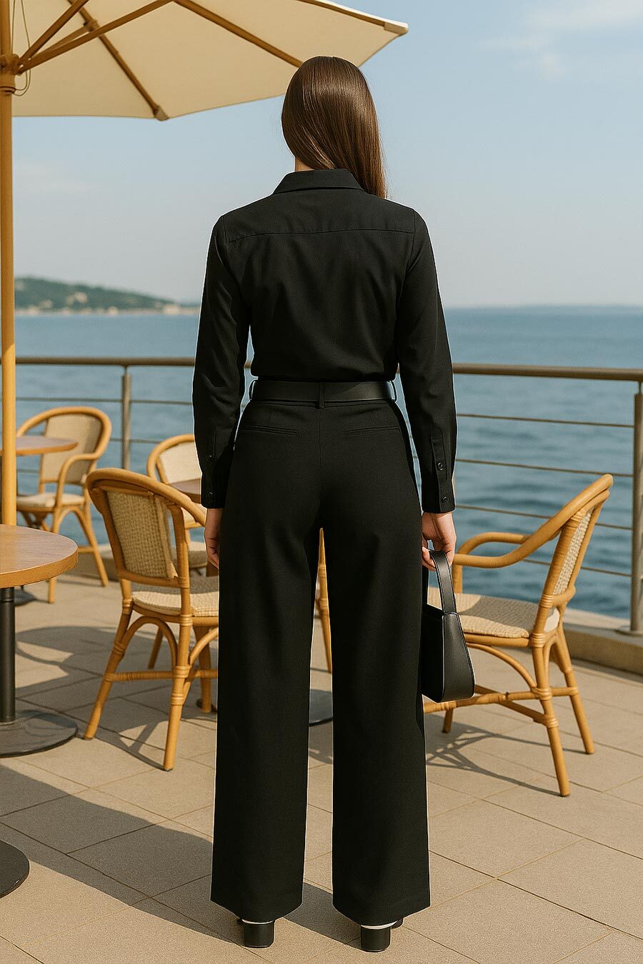 Ürün Özelliği: Ön ortadan fermuarlı, tokalı kemerli ve geniş paçadır.