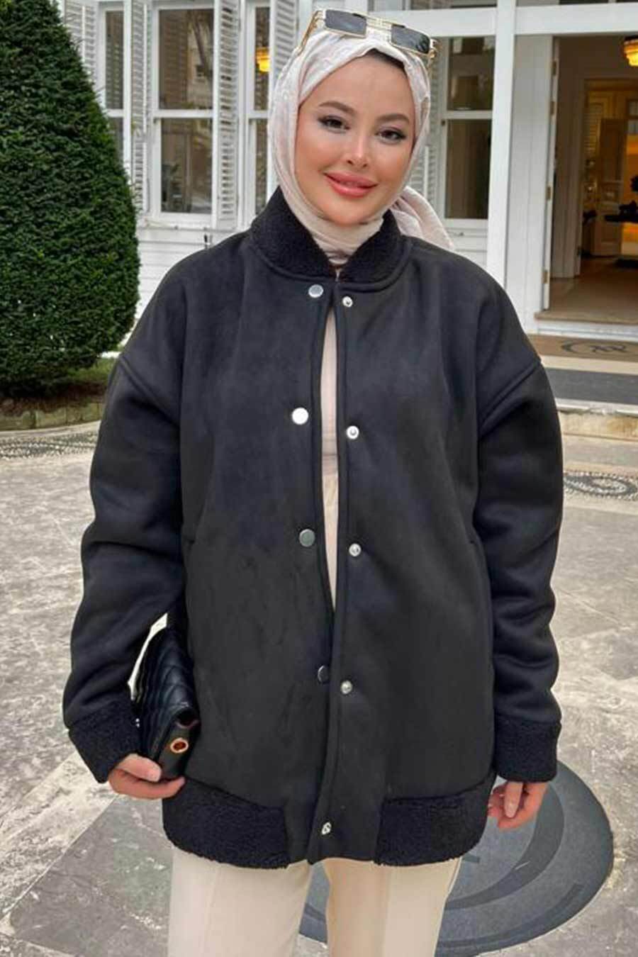 Kumaş Özelliği: Süet Deri kumaştan üretilmiştir.Ürün Özelliği: Dik yaka, uzun kollu, ön ortadan çıtçıt kapamalı, yakası, etek ucu ve kol ucu kürk detaylıdır.Ürün Boyu: 75 cm
