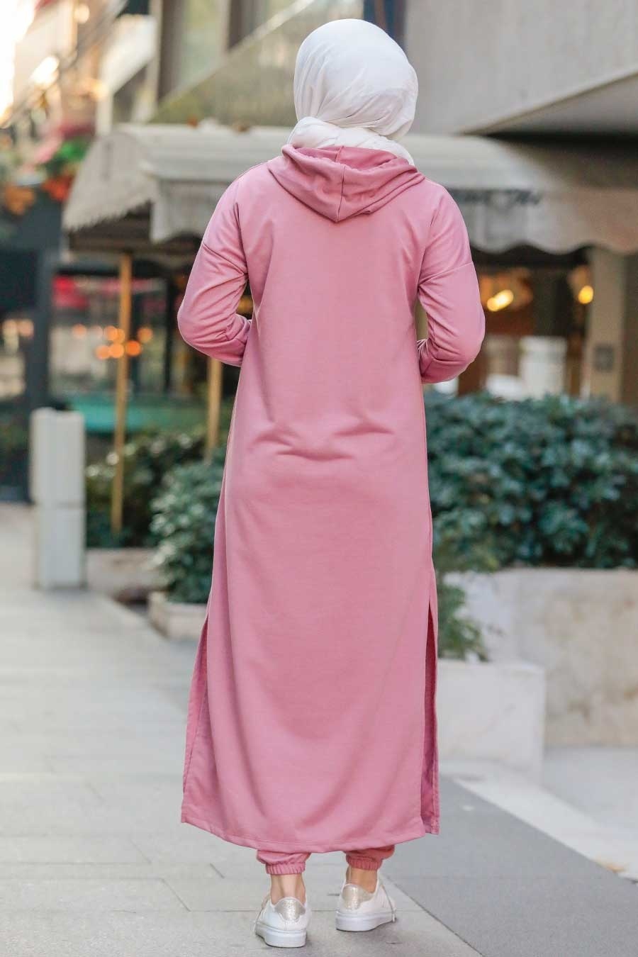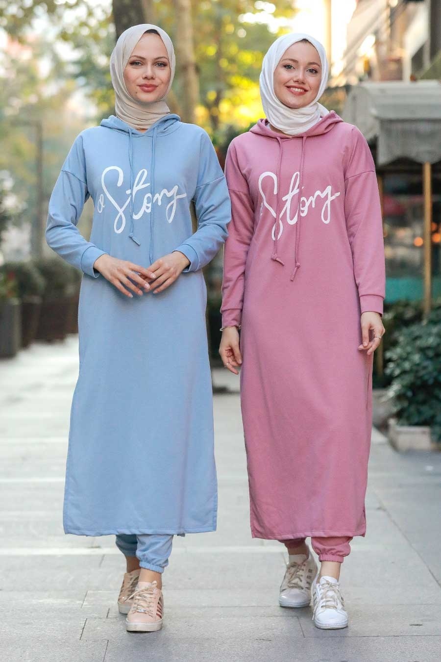 Kumaş Özelliği: %70 Pamuk %30 Polyester kumaştan üretilmiştir.Ürün Özelliği: Sıfır yaka, kapüşonlu, uzun kollu, yazı detaylı, yanlardan yırtmaçlı, pantolon beli lastikli, bilekleri lastikli ve boru paçadır.