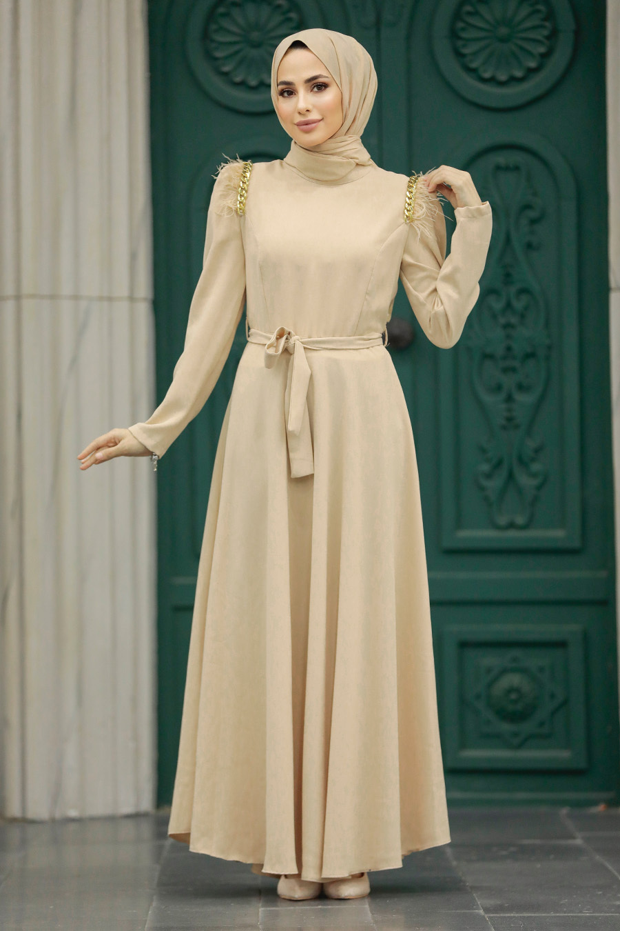 Beige Hijab Maxi Dress 77301BEJ
