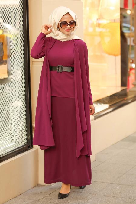 New Kenza - Etek & Ceket Mürdüm Tesettür Takım 51161MU