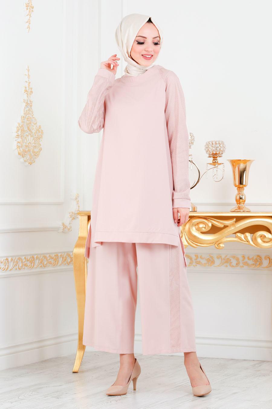 Ürün Özelliği Tunik bisiklet yaka ve reglan koldur. Pantolon belden lastiklidir. Kol ve pantolon kenarlarında file detayları kullanılmıştır.