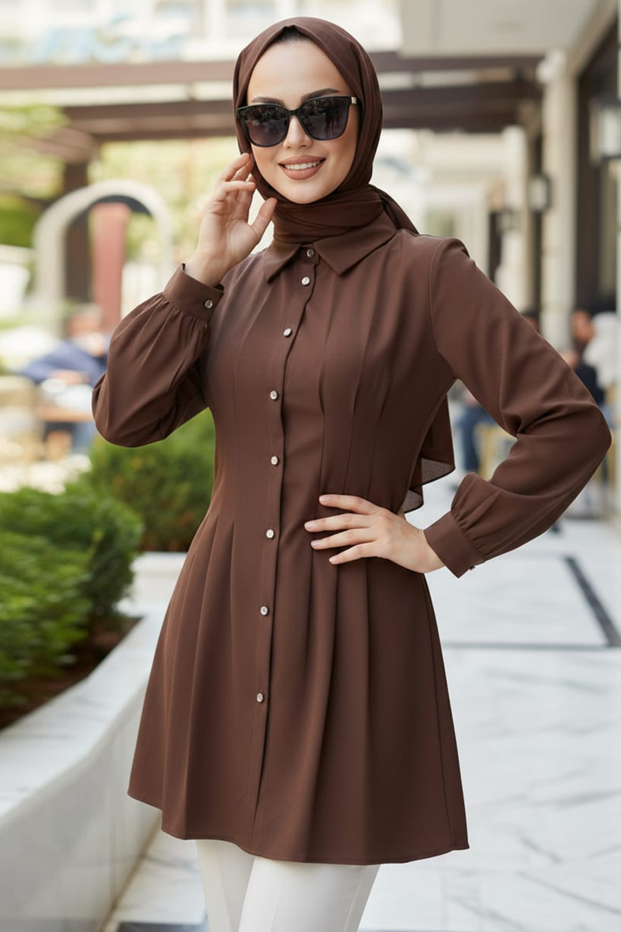 Pens Detaylı Kahverengi Tesettür Tunik 10500KH