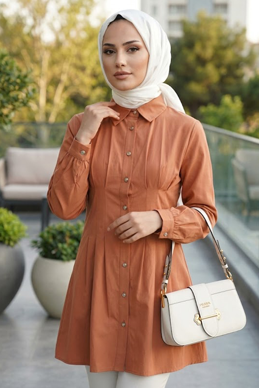 Pens Detaylı Taba Tesettür Tunik 10500TB