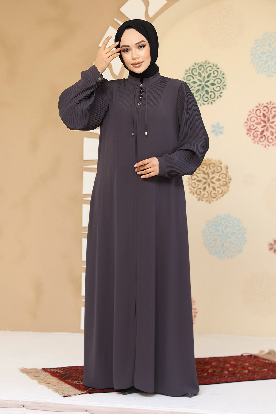 Ürün Rengi: Füme-Life Style çekimlerden dolayı ürün renginde ton farkı olabilir Sipariş İçeriği: Bu ürün kombin değildir. Sadece abayadan oluşmaktadır. Numune Bedeni: 38 Yıkama:30 derecede sıktırmadan yıkanabilir.
