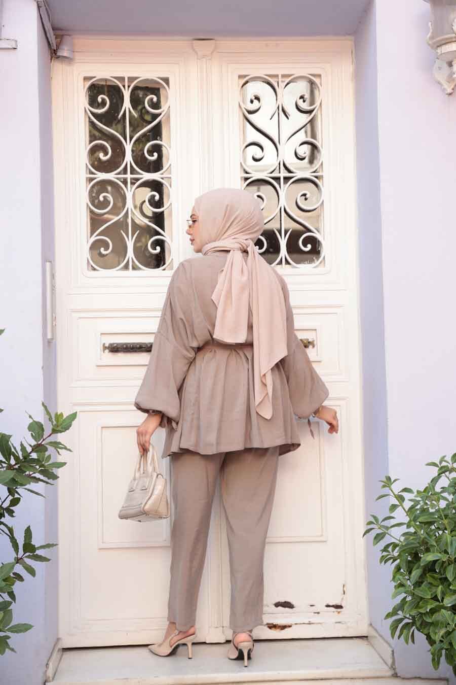 Etekli Kahverengi Tesettür İkili Takım 20239KH