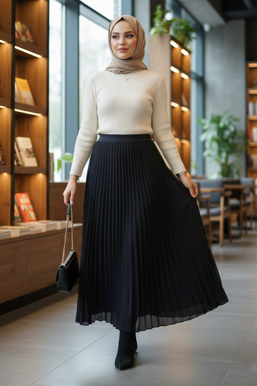 Buruşuk Koyu Haki Tesettür Etek 9227KHK