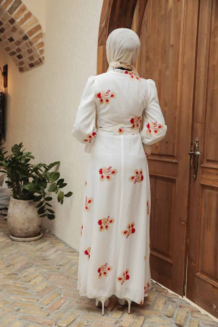 Ecru Hijab Dress 279018E