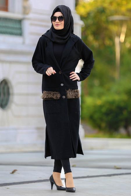 S-VUP - Cepleri Tüylü Siyah Tesettür Kap 40083S