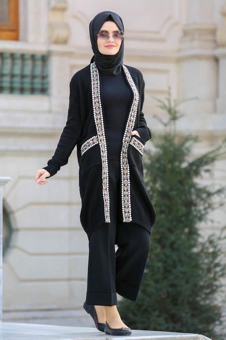 S-VUP - Cepli Siyah Tesettür Triko Hırka 42560S