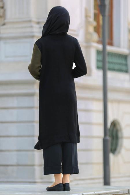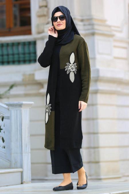 S-VUP - Çiçek Detaylı Haki Tesettür Triko Hırka 4212HK