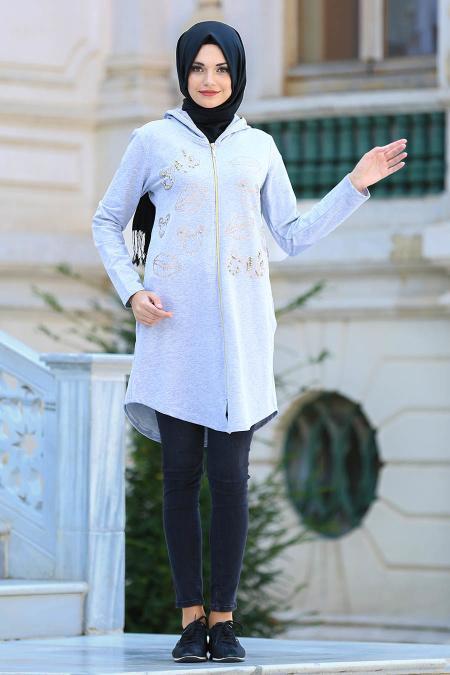 S-VUP - Kapşonlu Gri Tesettür Kap 3880GR