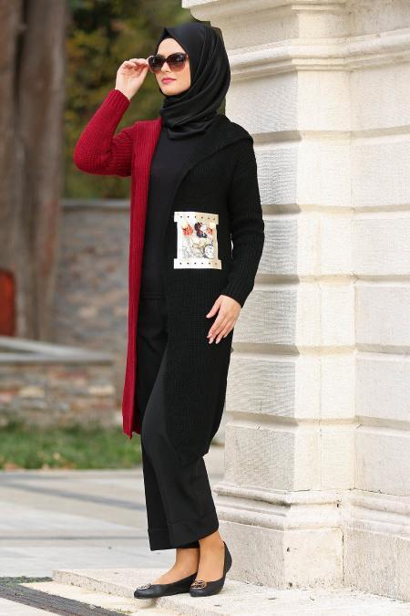 Ürün Özelliği | Yaka ve ön kapama bölümü şerit detaylı yün hırka |