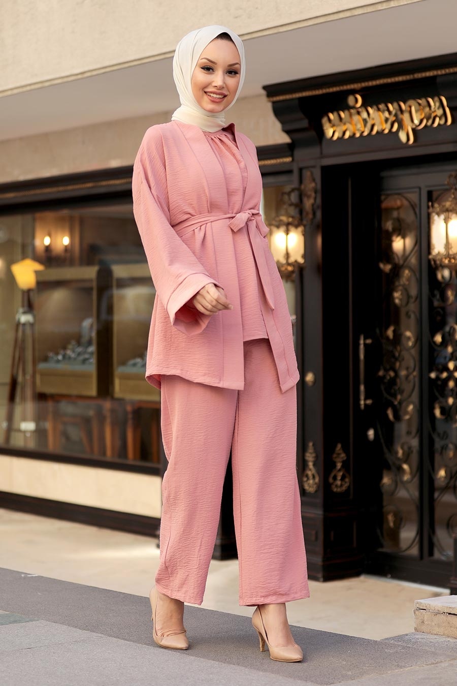 Salmon Pink Hijab Suit Dress 1104SMN