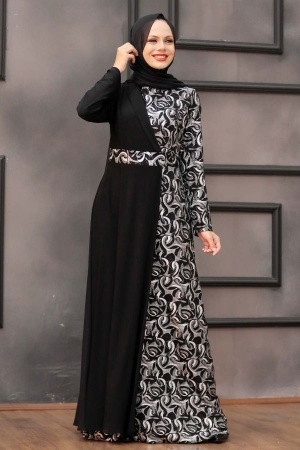 Neva Style - Plus Size Silver Islamic Wedding Dress 3067GMS