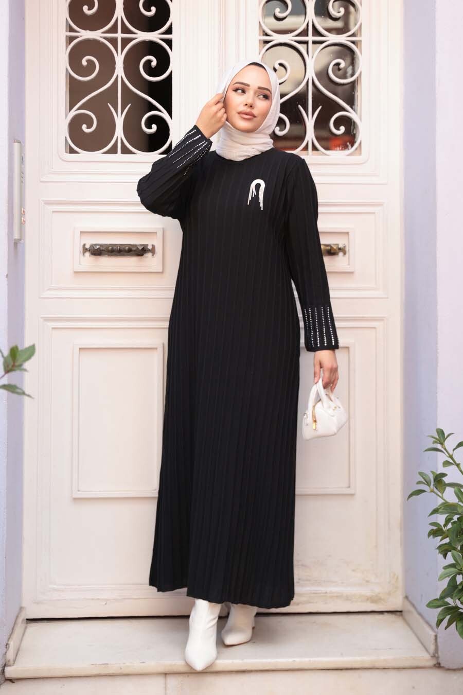 Ürün Özelliği: Sıfır yaka, uzun kollu, çizgi detaylı ve boncuk detaylıdır.