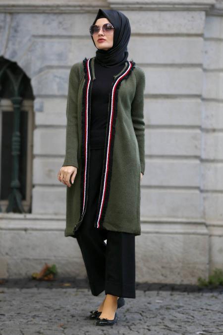 Ürün Özelliği | Yaka ve ön kapama bölümü şerit detaylı yün hırka |