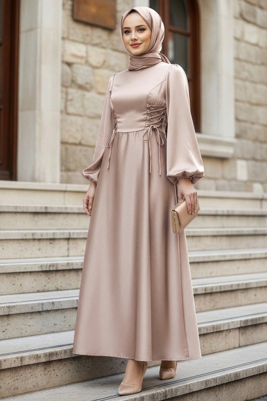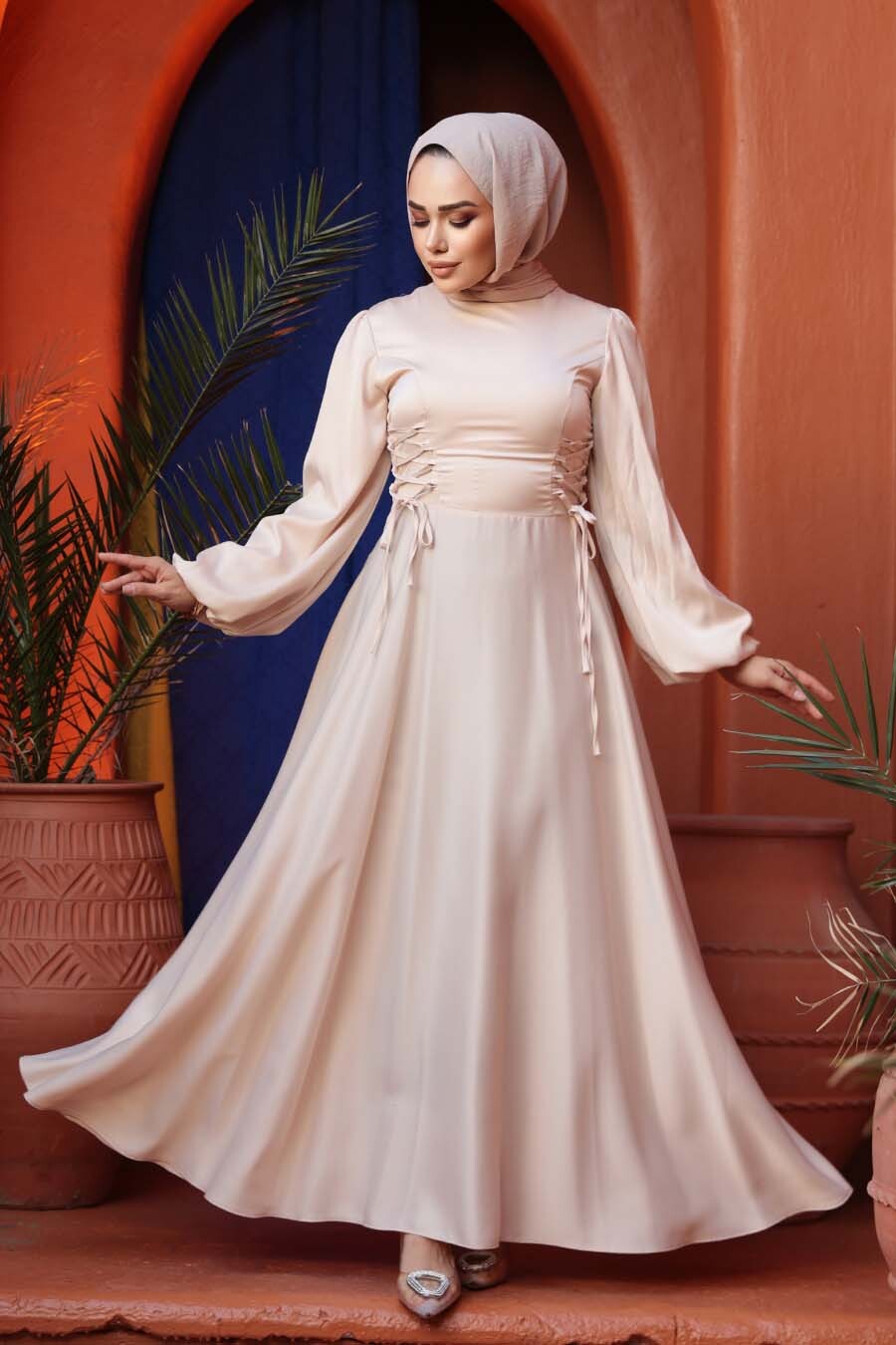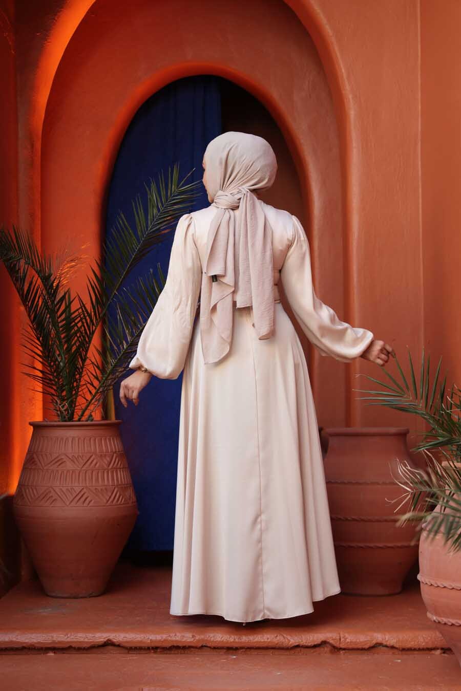 Ürün standart kalıp olup normalde kullandığınız bedeni sipariş vermeniz tavsiye olunur. Özel günler, düğün, nişan, söz, davet ve mezuniyet için aradığınız tesettürlü abiye elbisedir.