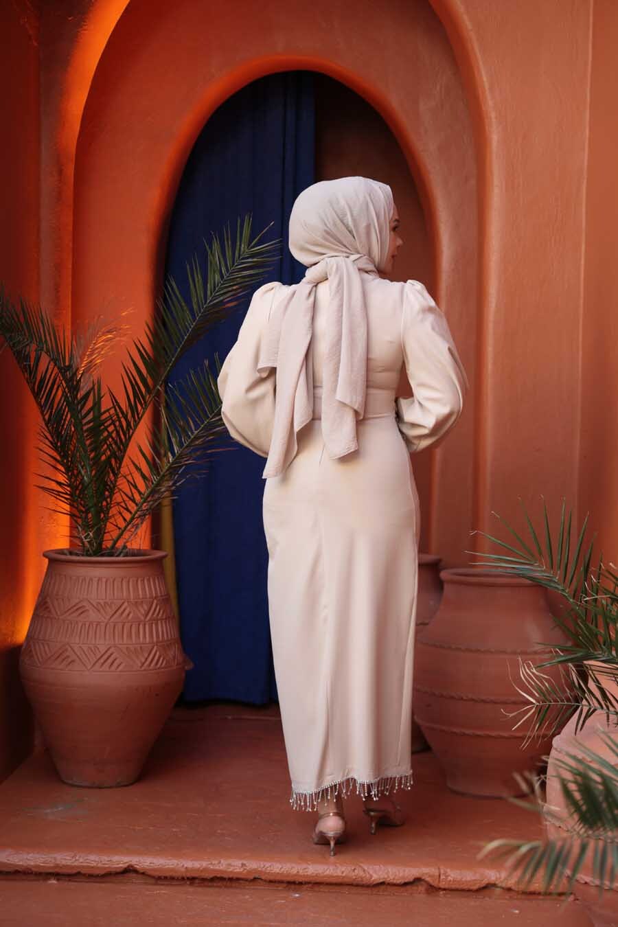 Ürün Rengi: Bej- Life Style çekimlerden dolayı ürün renginde ton farkı olabilir Sipariş İçeriği: Bu ürün kombin değildir. Sadece abiyeden oluşmaktadır. Numune Bedeni: 38 Yıkama: Yalnızca kuru temizleme yapılabilir.
