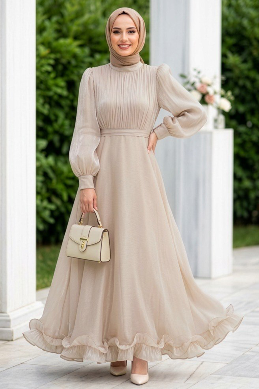 Ürün Rengi: Bej-Life Style çekimlerden dolayı ürün renginde ton farkı olabilir Sipariş İçeriği: Bu ürün kombin değildir. Sadece abiyeden oluşmaktadır. Numune Bedeni: 38 Yıkama:30 derecede sıktırmadan yıkanabilir.