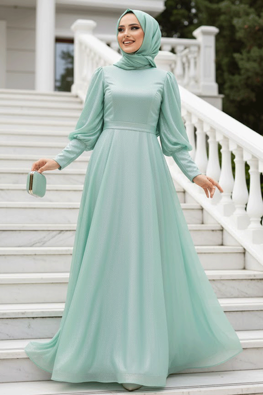 Ürün standart kalıp olup normalde kullandığınız bedeni sipariş vermeniz tavsiye olunur. Özel günler, düğün, nişan, söz, davet ve mezuniyet için aradığınız tesettürlü abiye elbisedir.