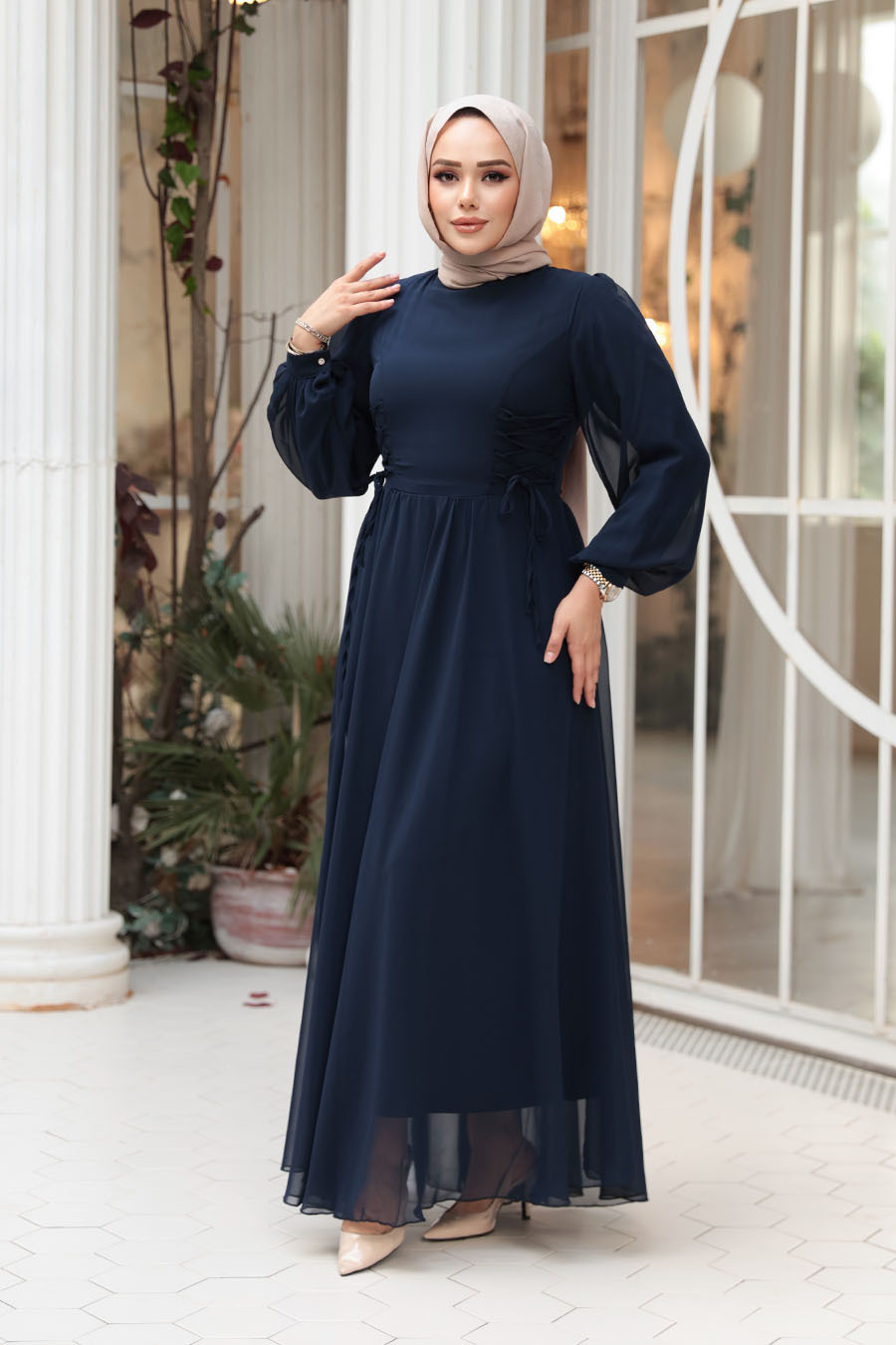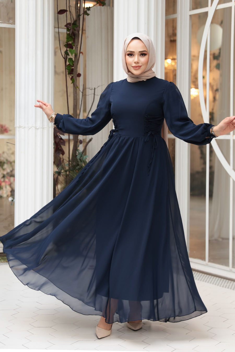 Ürün standart kalıp olup normalde kullandığınız bedeni sipariş vermeniz tavsiye olunur. Özel günler, düğün, nişan, söz, davet ve mezuniyet için aradığınız tesettürlü abiye elbisedir.