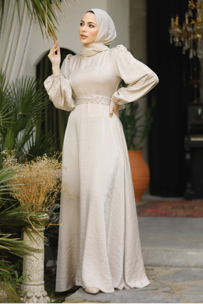 Ürün Boyu: 145 cmÜrün Rengi: Bej-Life Style çekimlerden dolayı ürün renginde ton farkı olabilir Sipariş İçeriği: Bu ürün kombin değildir. Sadece abiyeden oluşmaktadır.Numune Bedeni: 38Yıkama: Yalnızca kuru temizleme yapılabilir.Manken Ölçüleri: Boy: 165 cm