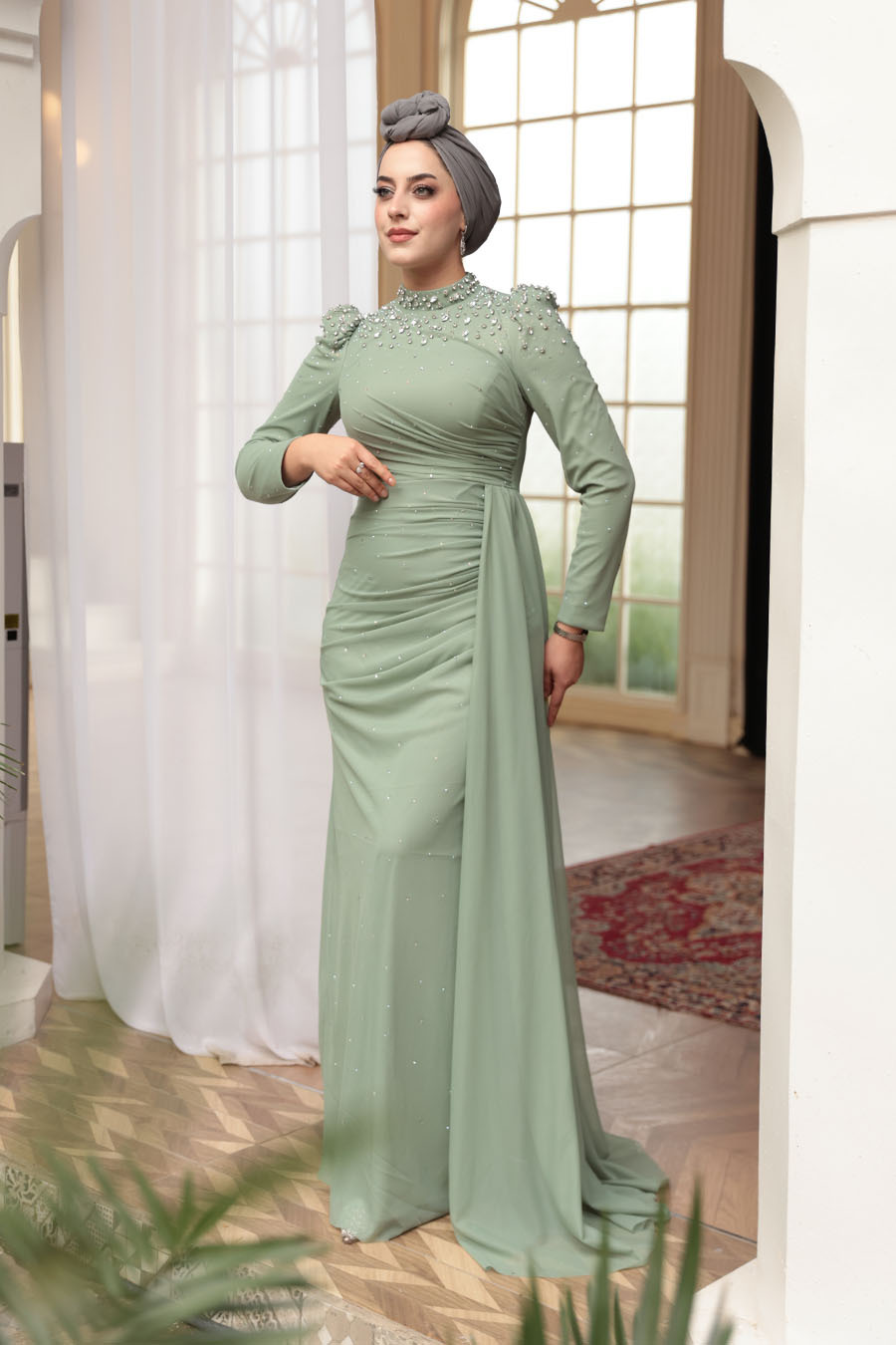 Ürün Rengi: Mint- Life Style çekimlerden dolayı ürün renginde ton farkı olabilir Sipariş İçeriği: Bu ürün kombin değildir. Sadece abiyeden oluşmaktadır. Numune Bedeni: 38 Yıkama: Yalnızca kuru temizleme yapılabilir.