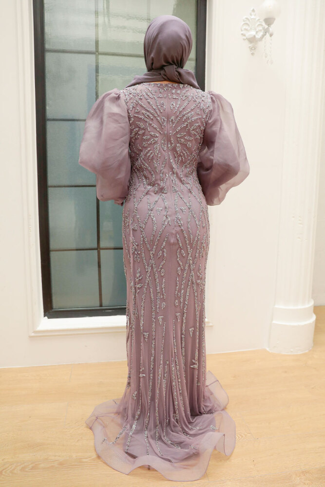 Kumaş Özelliği: %100 Polyester kumaştan üretilmiştir.Ürün Özelliği: Sıfır yaka, uzun kollu, balon kollu, kol ucu lastikli, boncuk işlemeli, astarlı, arka ortadan fermuarlı ve tül tarlatanlıdır.