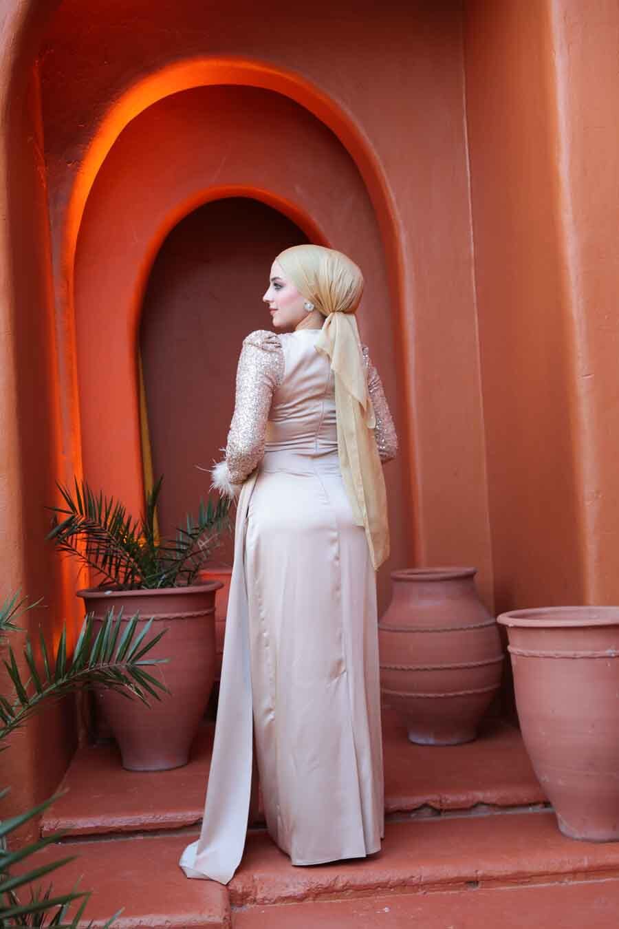Ürün standart kalıp olup normalde kullandığınız bedeni sipariş vermeniz tavsiye olunur. Özel günler, düğün, nişan, söz, davet ve mezuniyet için aradığınız tesettürlü abiye elbisedir.