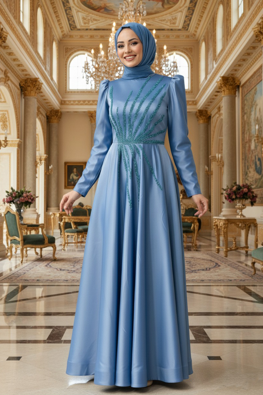Bu ürün abiye olduğu için iade kabul edilmemektedir. Değişim yapılır. ( Abiye ürünlerin değişimi yine abiye ürünlerle yapılmaktadır. )Ürün standart kalıp olup normalde kullandığınız bedeni sipariş vermeniz tavsiye olunur. Özel günler, düğün, nişan, söz, davet ve mezuniyet için aradığınız tesettürlü abiye elbisedir.