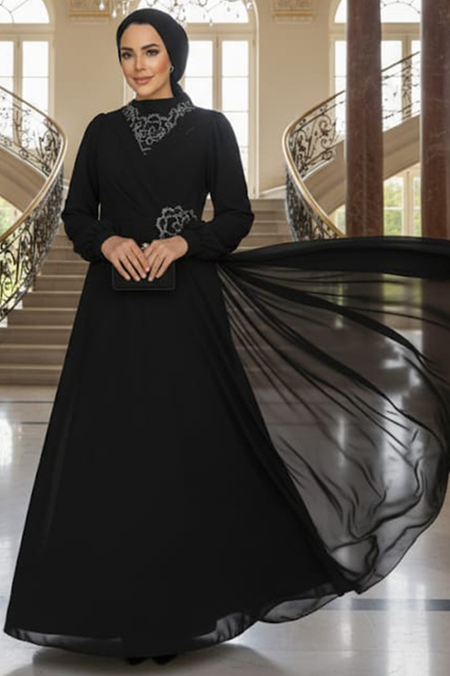 Ürün Boyu: 150 cmÜrün Rengi: Siyah-Life Style çekimlerden dolayı ürün renginde ton farkı olabilir Sipariş İçeriği: Bu ürün kombin değildir. Sadece abiyeden oluşmaktadır.Numune Bedeni: 38Yıkama: Yalnızca kuru temizleme yapılabilir.Manken Ölçüleri: Boy: 165 cm