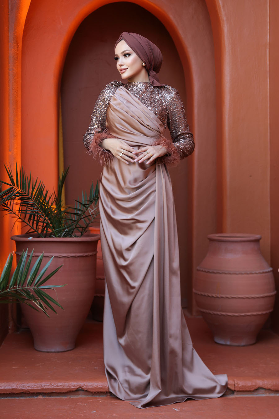 Ürün Rengi: Vizon- Life Style çekimlerden dolayı ürün renginde ton farkı olabilir Sipariş İçeriği: Bu ürün kombin değildir. Sadece abiyeden oluşmaktadır. Numune Bedeni: 38 Yıkama:Yalnızca kuru temizleme yapılabilir.