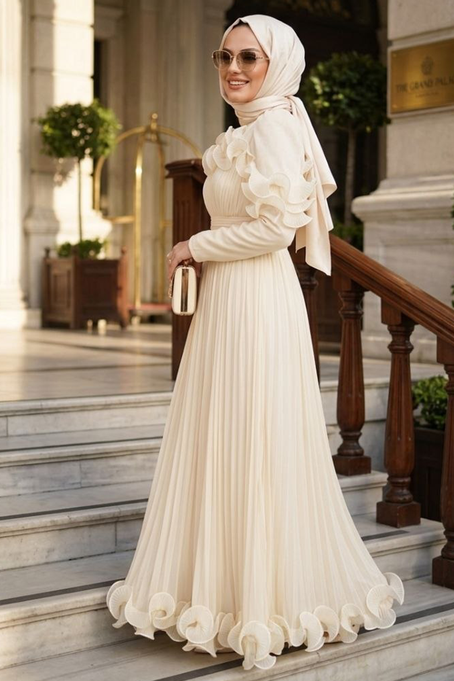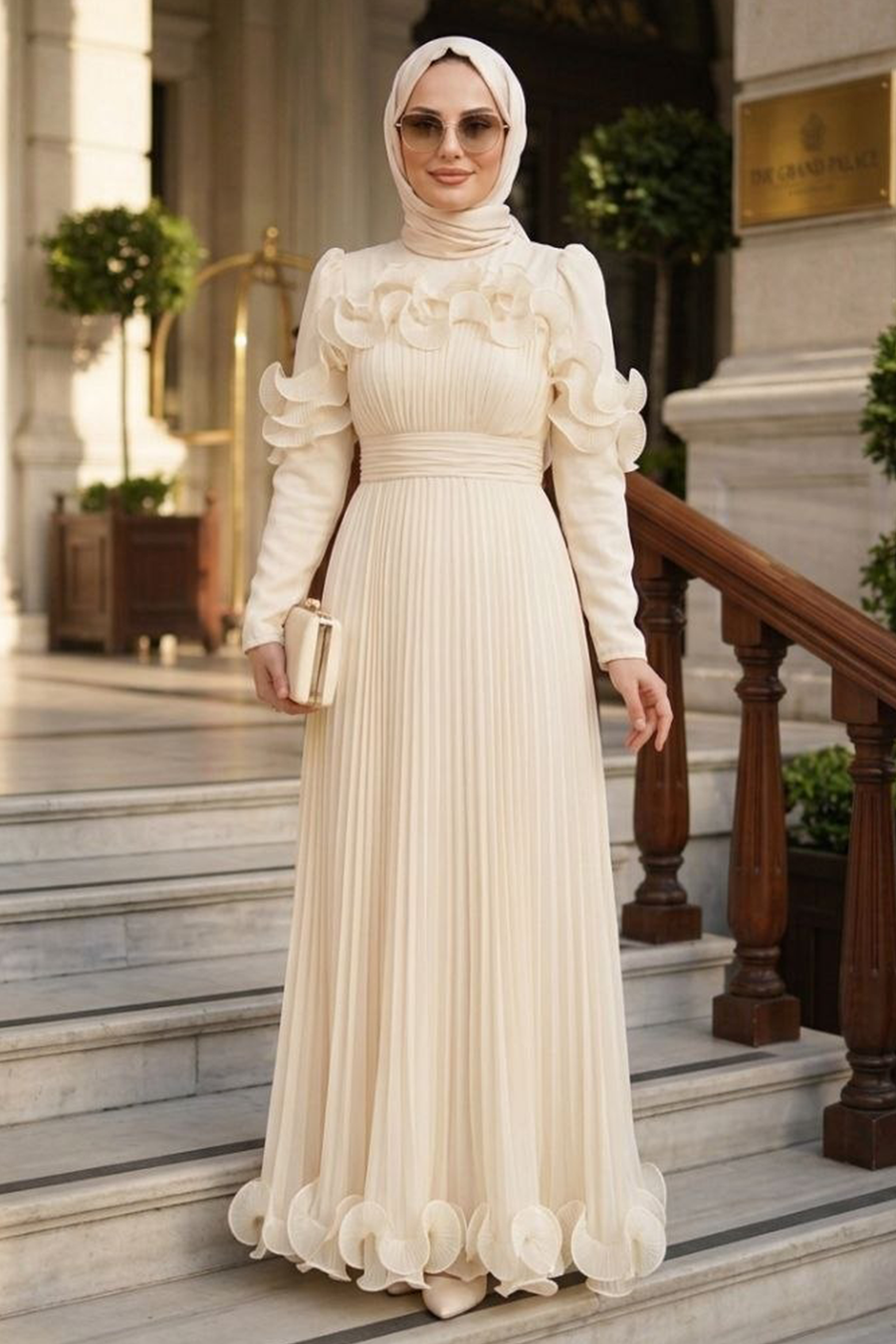 Ürün Rengi: Ekru- Life Style çekimlerden dolayı ürün renginde ton farkı olabilir Sipariş İçeriği: Bu ürün kombin değildir. Sadece abiyeden oluşmaktadır. Numune Bedeni: 38 Yıkama: Yalnızca kuru temizleme yapılabilir.